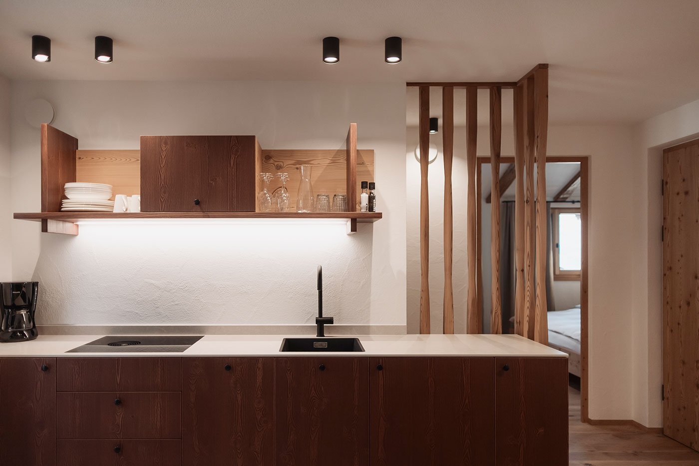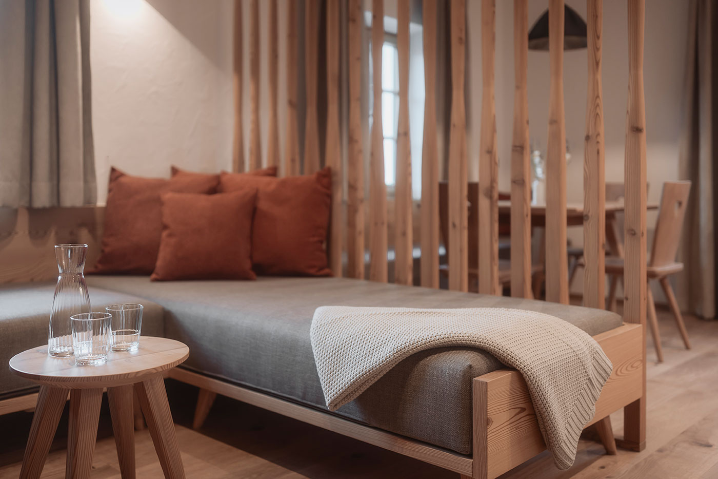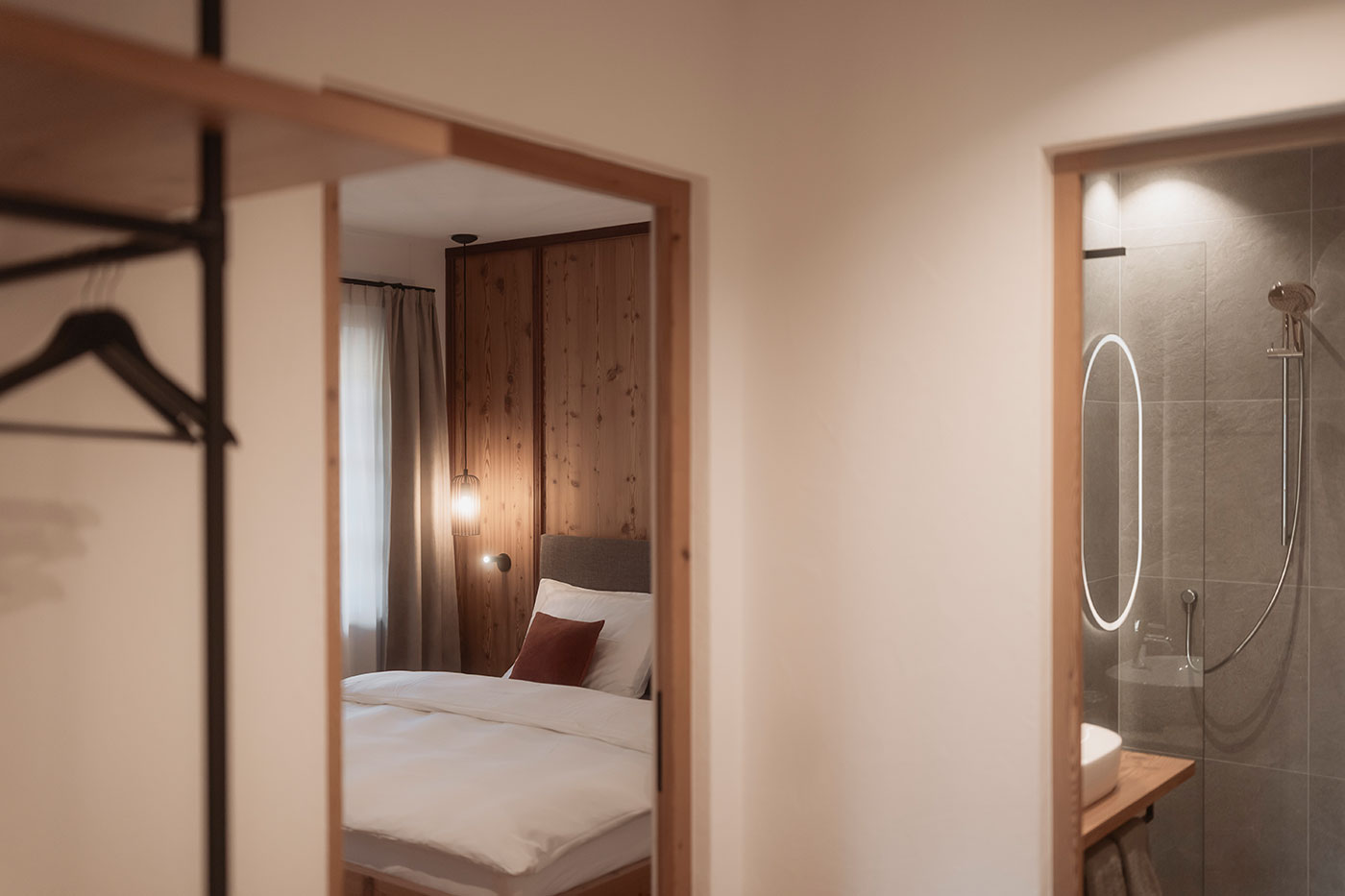 - Schlafen: separates Doppelzimmer mit natürlichen Materialien und ruhiger Atmosphäre – ideal für erholsame Nächte