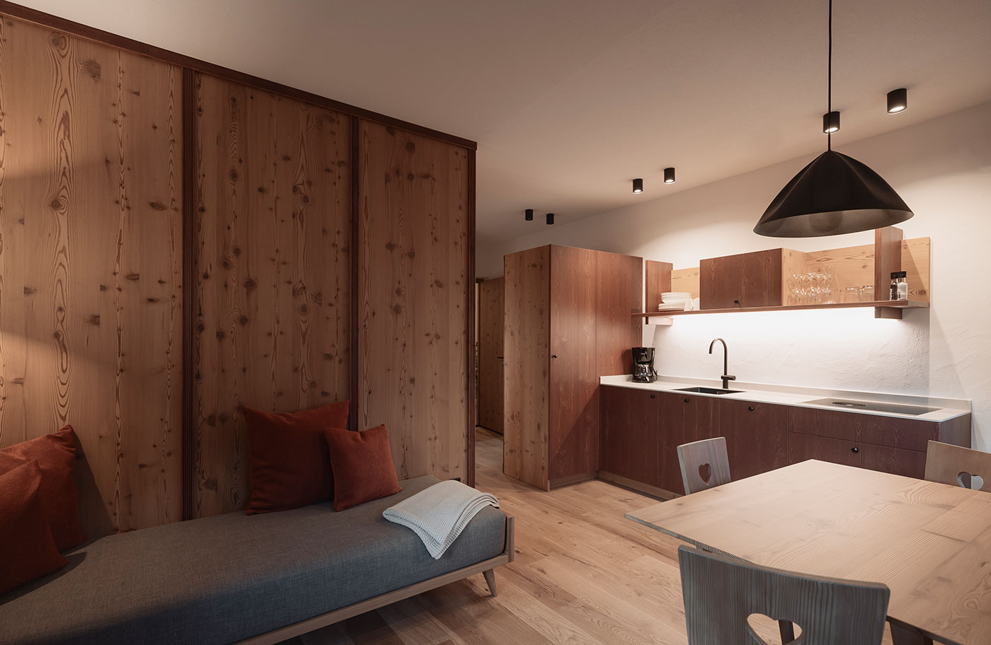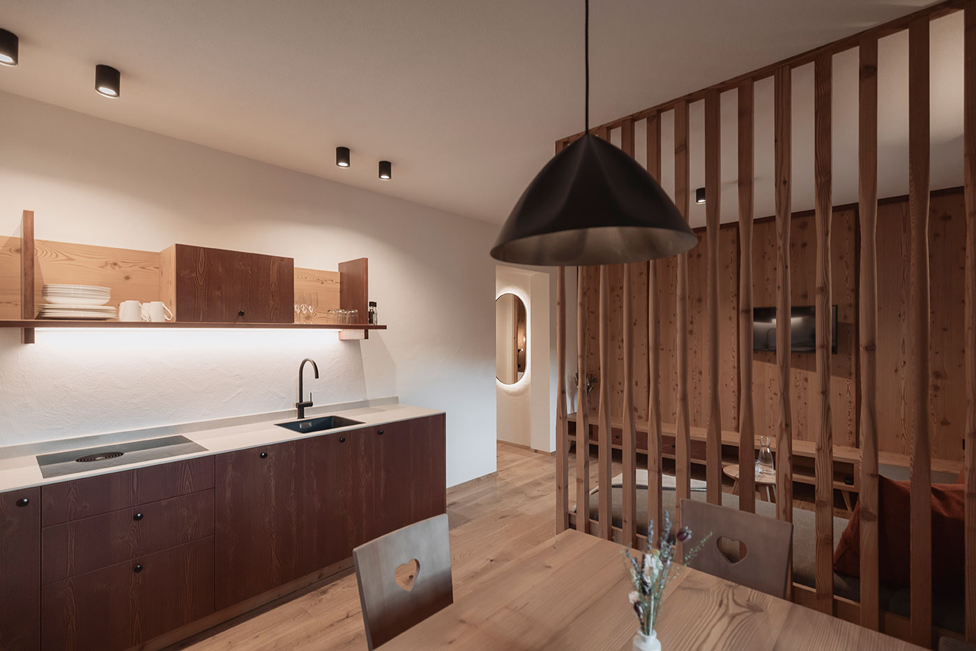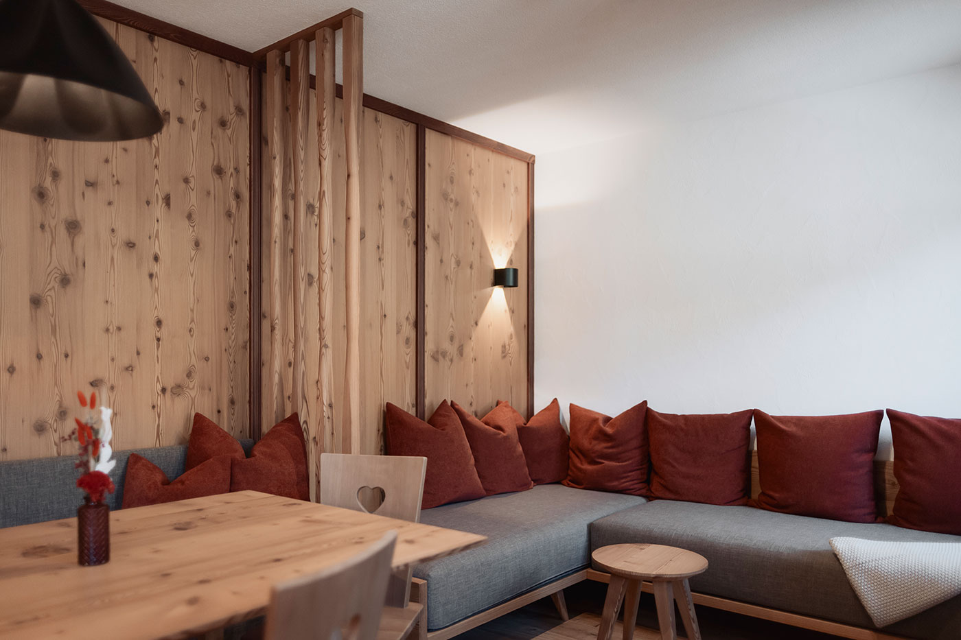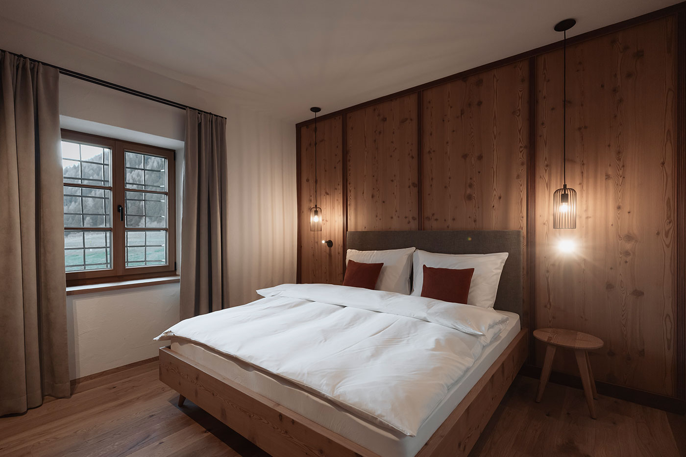 In unseren modern-eleganten Apartments in Rasen-Antholz wohnt Ihr mitten im denkmalgeschützten Aberle Hof – dort, wo alte Mauern Geschichten flüstern und nachhaltige Materialien neuen Komfort formen. Historische Fenster öffnen den Blick über Wiesen, Wälder und die Dolomiten, während warmes Lärchenholz jeden Raum mit heimeliger Atmosphäre füllt. Ein Ort für alle, die echtes Bauernhofleben spüren möchten und dabei Design, Natur & Gelassenheit schätzen.